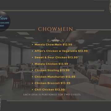 At Affan's Halal, we take pride in offering a unique blend of Bangladeshi and Indo-Chinese cuisines. Each dish is crafted with traditional spices that reflect our rich heritage and culinary artistry.